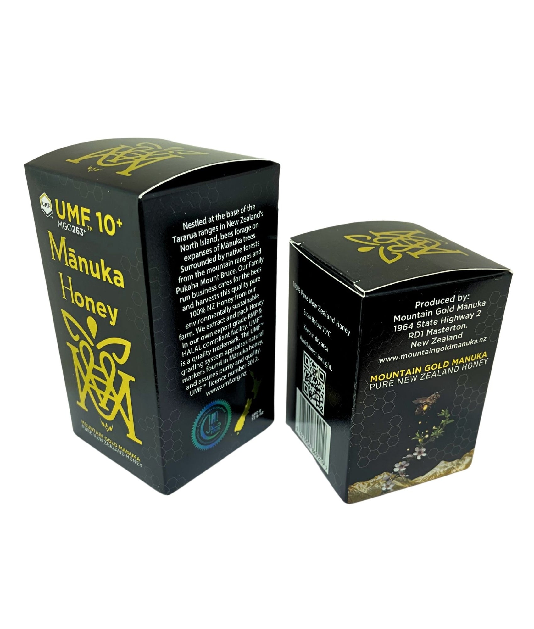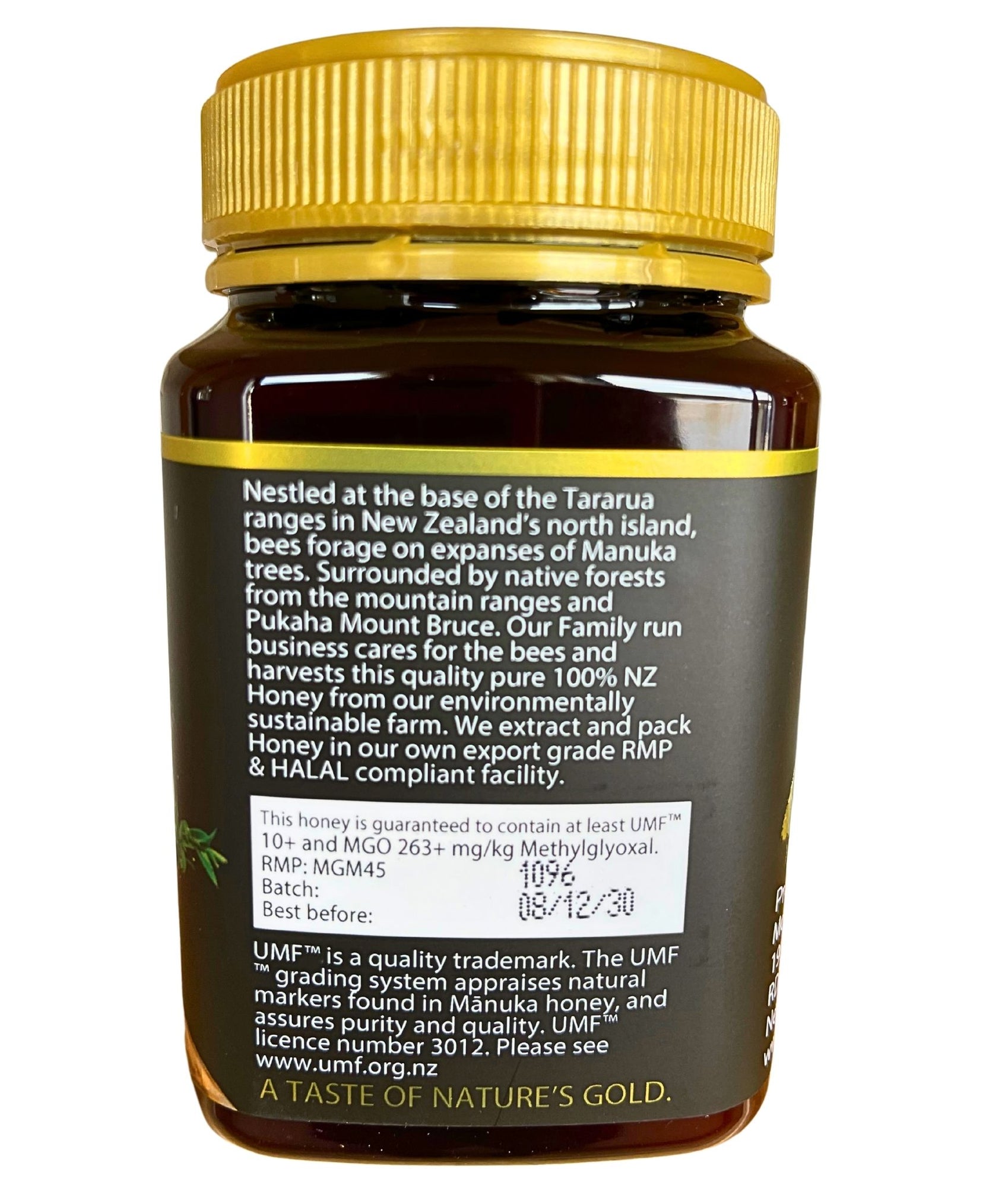 Sorgfältig geerntet und minimal verarbeitet, wird Mountain Gold Manuka Honey UMF™ 10+ in einer Halal-zertifizierten, nach RMP-Standard exportgerechten Anlage verpackt, ohne dass etwas hinzugefügt oder entfernt wird – einfach nur reiner neuseeländischer Manuka-Honig.