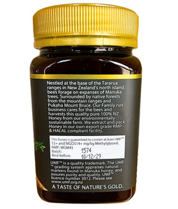 Sorgfältig geerntet und minimal verarbeitet, wird Mountain Gold Manuka Honig in einer Halal-zertifizierten, nach RMP-Standard exportierten Anlage hergestellt und enthält nichts, was hinzugefügt oder entfernt wird .