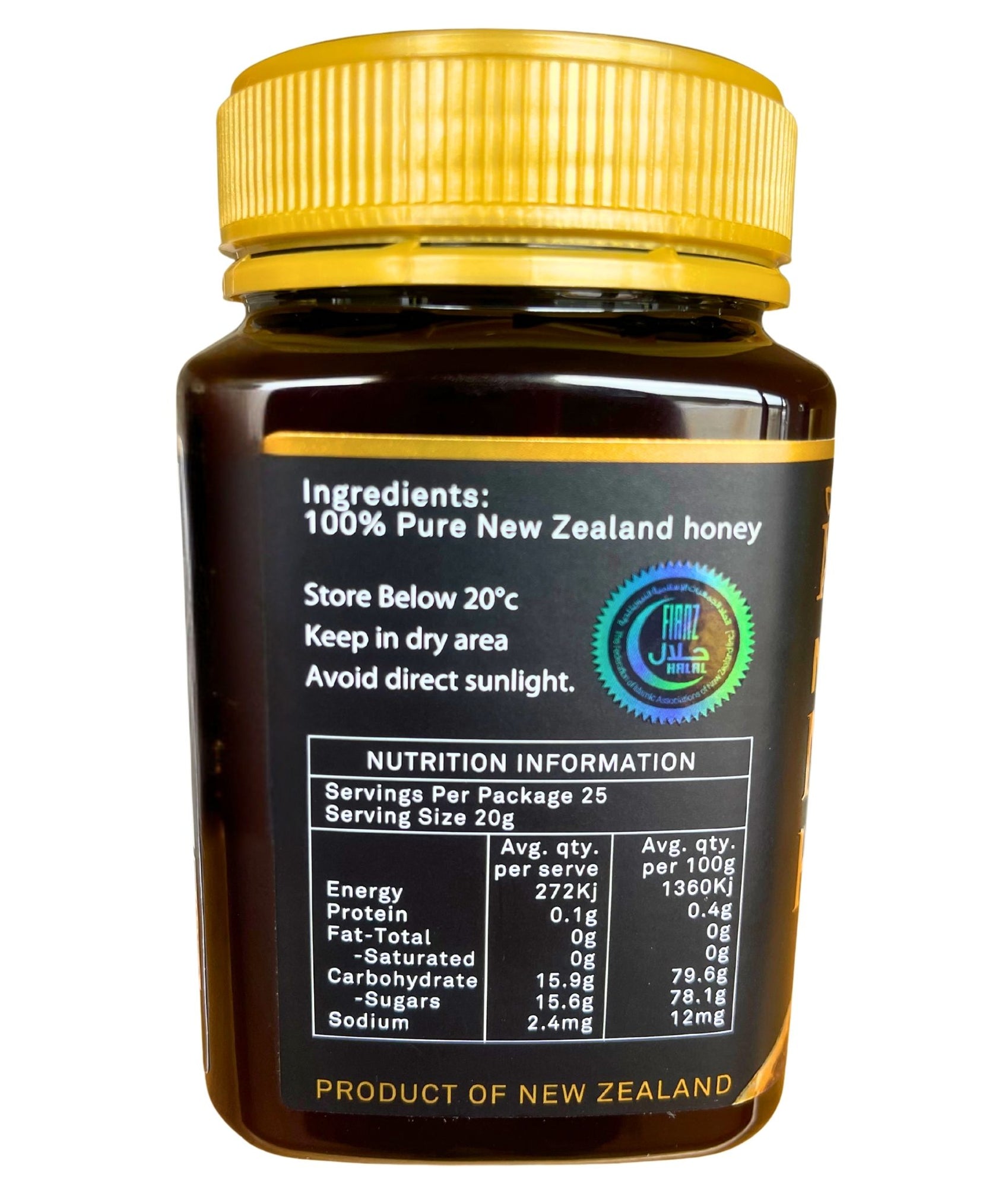 Sorgfältig geerntet und minimal verarbeitet, wird Mountain Gold Multifloral Manuka Honey in einer Halal-zertifizierten, nach RMP-Standard exportgerechten Anlage verpackt, ohne dass etwas hinzugefügt oder entfernt wird – einfach nur reiner neuseeländischer Honig.