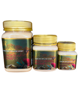 Dieser Honig wird aus den leuchtend purpurroten Blüten des ikonischen Pōhutukawa-Baumes ( Metrosideros excelsa ) gewonnen, der jedes Jahr im Dezember entlang der neuseeländischen Küste blüht. Er hat eine hellgoldene Farbe und eine sanfte, aromatische Süße. Sein leichter, blumiger Geschmack macht ihn zum perfekten Begleiter für Käse, Backwaren oder einfach zum Verfeinern von Joghurt oder Toast .