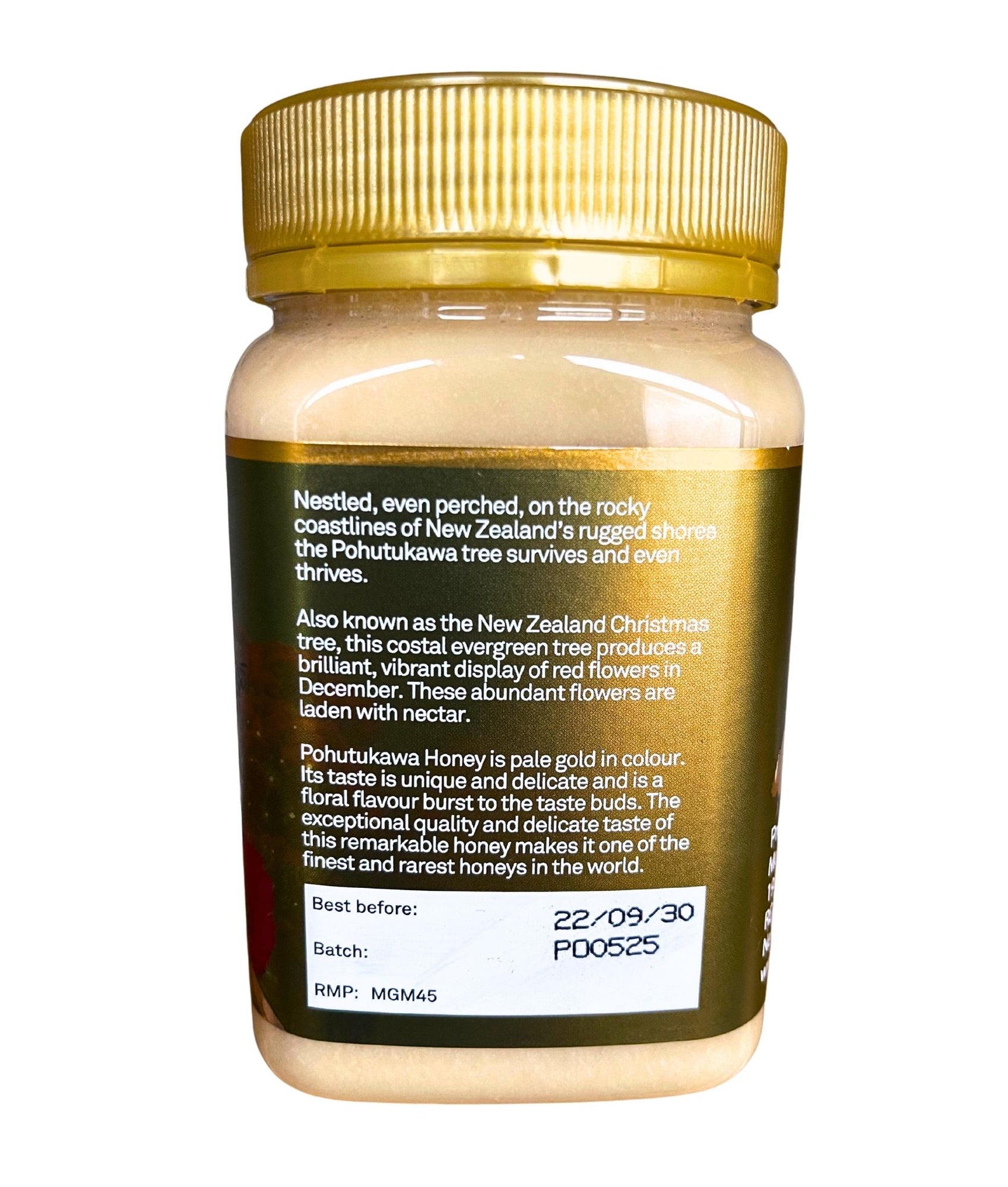 Sorgfältig geerntet und verarbeitet, um seine natürlichen Eigenschaften zu erhalten, wird Mountain Gold Pōhutukawa Honig in einer Halal-zertifizierten, nach RMP-Standard für den Export hergestellt und enthält weder Zusätze noch Entnahmen .