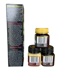 Mountain Gold UMF 5+ Manuka, Southern Rata and Rewarewa Honey Gift Pack