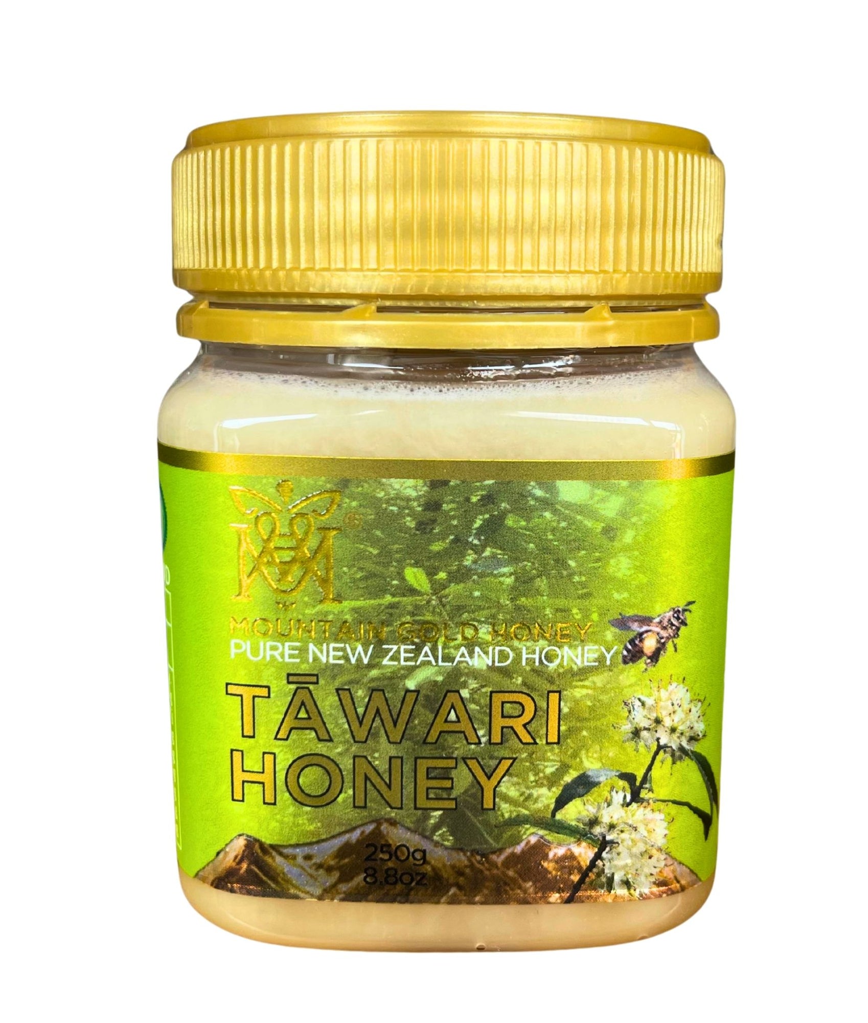 Discover the delicate charm of Mountain Gold Tawari Honey, a rare and distinctive native New Zealand honey celebrated for its light colour, smooth texture, and subtle butterscotch-like flavour.